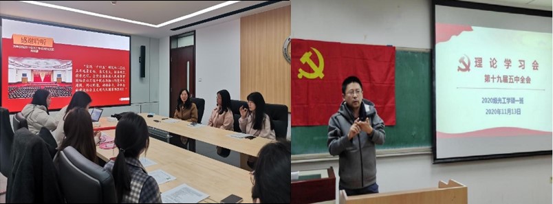 在本次学习十九届五中全会的活动中,理论导师与学生支部共同学习,一起讨论,指导学生党员对十九届五中全会的精神和方针产生更深层次的认识。