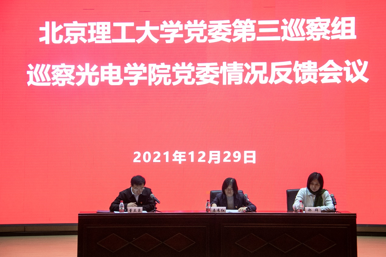 学校党委第四轮巡察第三巡察组全体成员、123av 党委委员,学院领导班子全体成员,七级管理人员,基层党支部书记、支部委员,各研究所所长、副所长、实验室主任,教学实验中心主任、副主任,责任教授、学部委员、学术骨干及师生代表参加会议。