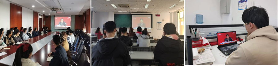 11 月 12 日上午,123av 党委组织师生党员通过电视、网络等形式积极收听收看党的十九届六中全会新闻发布会现场直播,学习党的十九届六中全会精神。