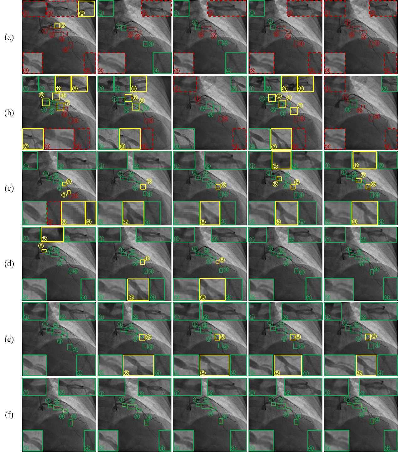 实验结果表明,所提方法针对冠状动脉X射线视频序列图像具有良好的狭窄检测能力,在实时性上与检测精度上均超越了现有17种最先进目标检测算法、视频检测算法和狭窄检测算法。