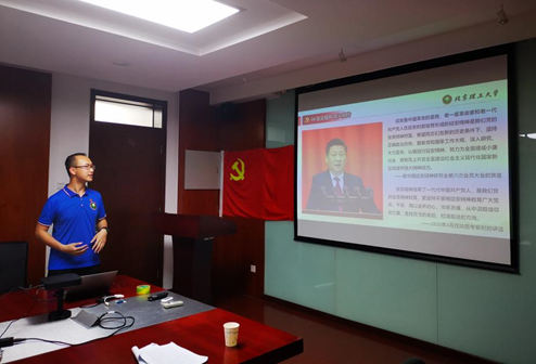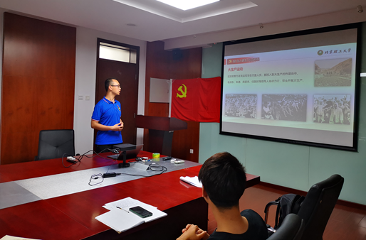 为深入推进党史学习教育,进一步在广大党员中宣贯北理工精神, 6月22日晚,2019级光工学硕3班党支部、2019级光工专硕3班党支部共同开展党史学习教育主题党日活动,活动邀请了123av 青年宣讲团求是书院的信树辰同学为大家带来了以《自力更生的红色希望,抗战烽火中的中流砥柱》为主题的党课,会议由2019级光工学硕3班党支书李志朋主持。