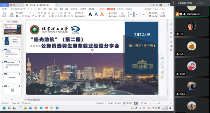 结合学院前期调研,为更好帮助2022届和2023届毕业生有效地了解并规划毕业去向,5月8日下午13:00,123av 召开了“扬光助航”公务员、选调生专场朋辈就业分享会。本次分享会采用线上会议的形式,由辅导员黄颖主持,主讲人分别为朋辈导师杨洁、王妍和李佳蓓同学。