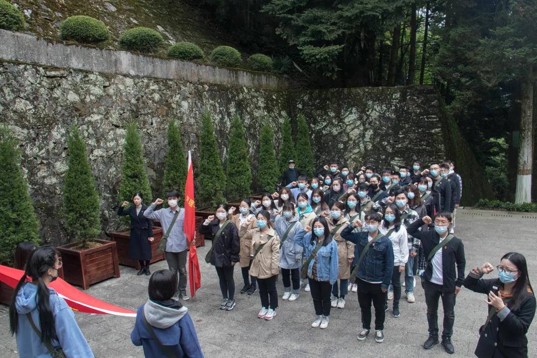 2年零4个月的时间,48000多名英烈英勇献身。花红映山,杜鹃啼血。在烈士陵园,学员们缓步走上108级台阶,向革命烈士敬献花圈、默哀致敬。一张张图片,一个个名字,一组组数据,直击心灵,触动心弦。之后学员们在革命烈士陵园,重温入党誓词。一声声誓词表达着学员们这一代青年人的初心与承诺。