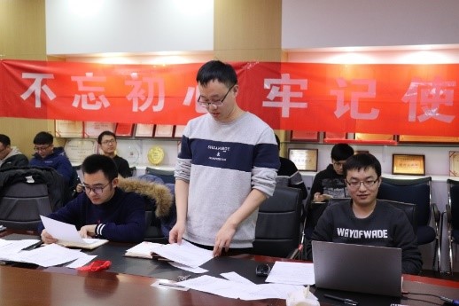 在自评环节,支部党员同志积极发言,每位党员同志都结合自身情况以及对《习近平关于“不忘初心、牢记使命”重要论述摘编》和《党章》的理解进行了自我评价,陈朝勇同志指出自己对党务工作积极性不足的问题。吴飞龙同志反思了自己对待科研态度不够端正的问题。王文鑫同志反思了对工作的抵触情绪并承诺尽快改正。