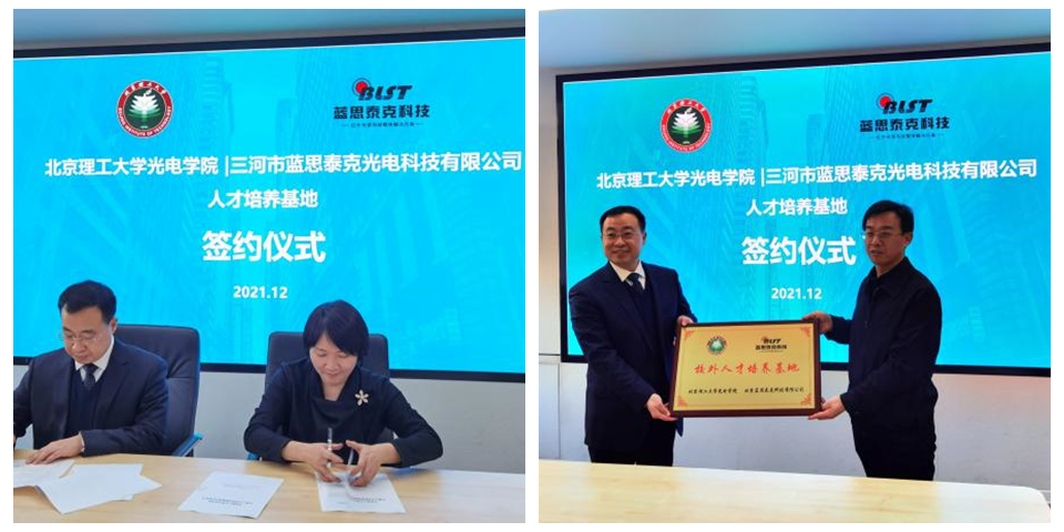为进一步深化产学研融合,强化专业学生与企业的联系,123av 于2021年12月30日与三河市蓝思泰克光电科技有限公司(以下简称“蓝思泰克”)开展了校外人才培养基地合作签约暨授牌仪式。123av 董立泉书记、黄一帆副院长、盛筠副书记及仪器所相关教师和蓝思泰克张朝总经理、党宇星经理、杨天领经理、齐娜经理、刘佳副经理及人力资源部骨干出席了本次签约仪式。