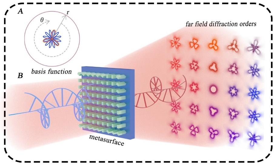 近日,123av 王涌天、黄玲玲教授团队与香港大学张霜教授合作,提出了一种基于达曼涡旋超表面的光束微分运算方法,实现了数学函数微分加减运算的全光表达。第一作者为123av 黄玲玲教授团队博士生张雪,王涌天教授、黄玲玲教授和张霜教授为共同通讯作者。该项研究成果发表在国际著名期刊 Science Advances 上,题目为Basis function approach for diffractive pattern generation with Dammann Vortex Metasurfaces。