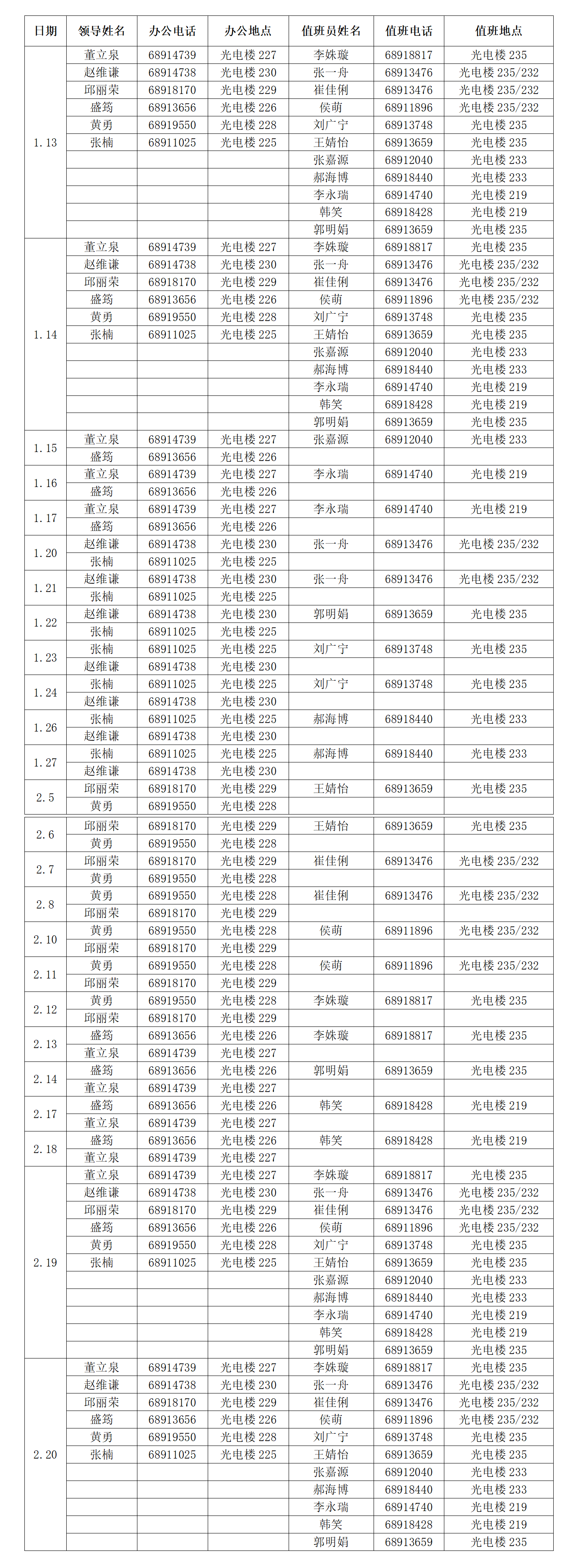 123av公告 123av公告 主页» 123av公告 » 学院通知 123av 2025年冬季学期(寒假)中层领导及行政管理人员值班表 编辑:盛筠 审核:盛筠 发布日期:2025-01-07 阅读次数: 分享到: