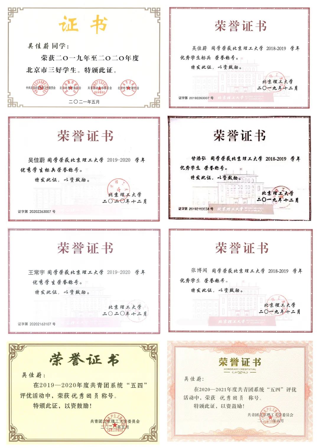班级同学表现优异:1人获评北京市三好学生;3人次获评校级优秀学生标兵;13人次获评校级优秀学生;5人次获评校级优秀团员;3人次获评校级优秀团干部。