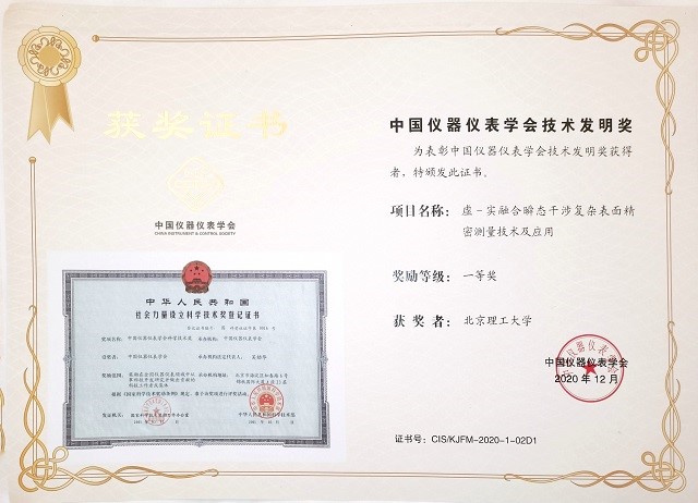 2020年12月24日,中国仪器仪表学会2020年科技奖励大会暨九届三次理事(扩大)会议在浙江省杭州市召开,本次大会上颁发了2020年中国仪器仪表学会科学技术奖,123av 郝群教授团队申报的“虚-实融合瞬态干涉复杂表面精密测量技术及应用”项目荣获技术发明一等奖。